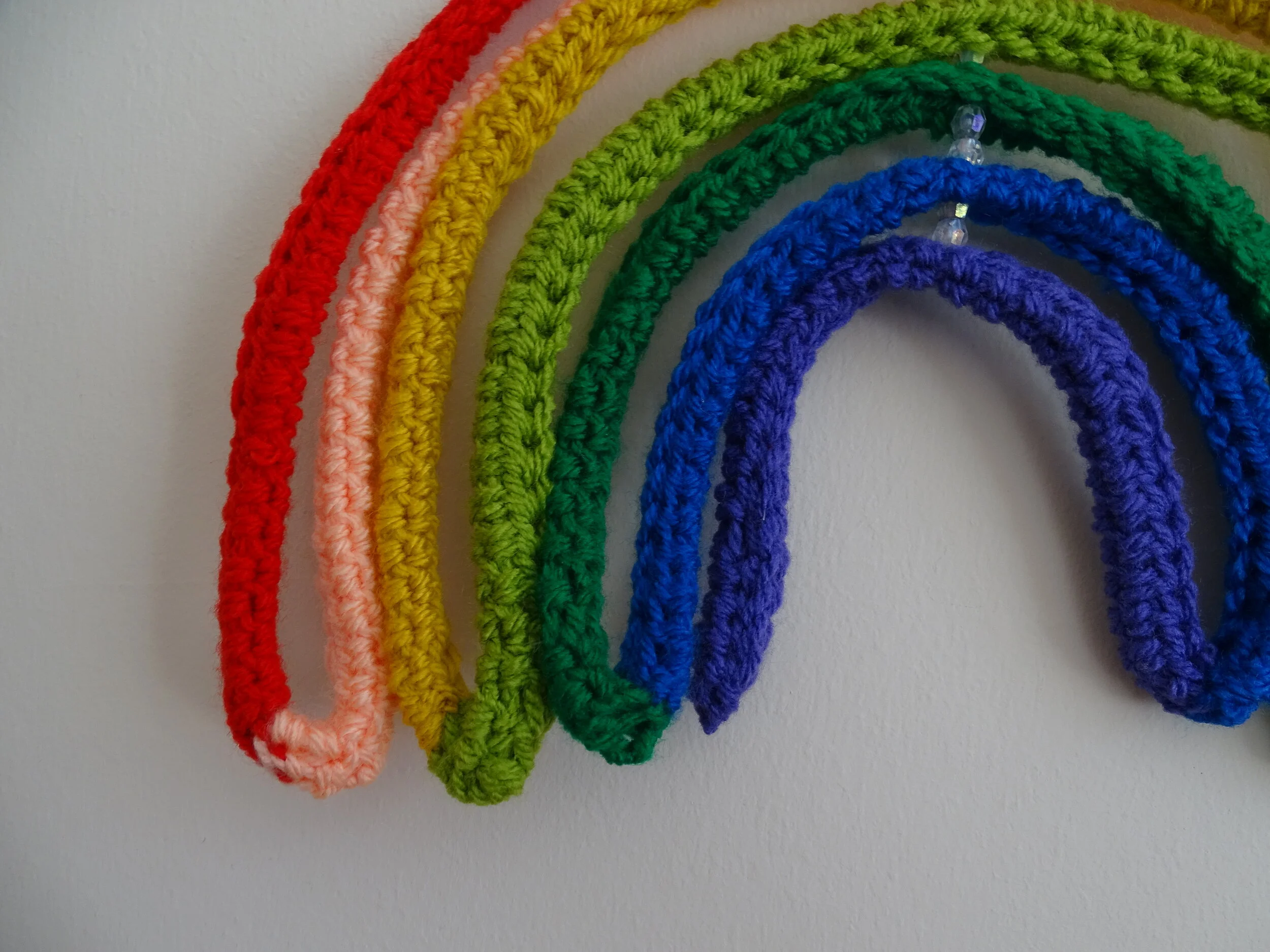 Today I’m hanging my message of hope in the window. My own crocheted squiggly rainbow.